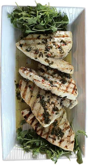 Pre-oil the grill with vegetable oil to prevent sticking. Season fish with salt and pepper and cook over medium high heat for 2-3 minutes per side. Remove fish to a flat platter and perforate with a fork. Pour sauce over fish, while still hot. Cover with tin foil to rest 5 minutes.