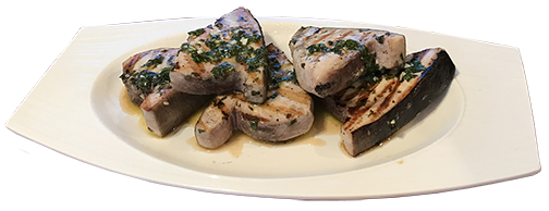Pre-oil the grill to prevent the fish from sticking. Brush the fish with 2 tbsp of the lemon olive oil mixture. Grill the steaks until just cooked through. About 5 minutes per side. Transfer steaks to platter, cover with tin foil and allow to rest for 5 minutes. Drizzle remaining sauce and serve.